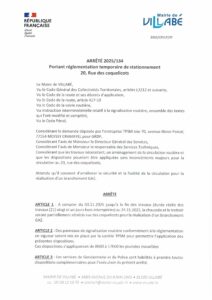 Arrêté n°134 portant règlementation temporaire 20 rue des Coquelicots